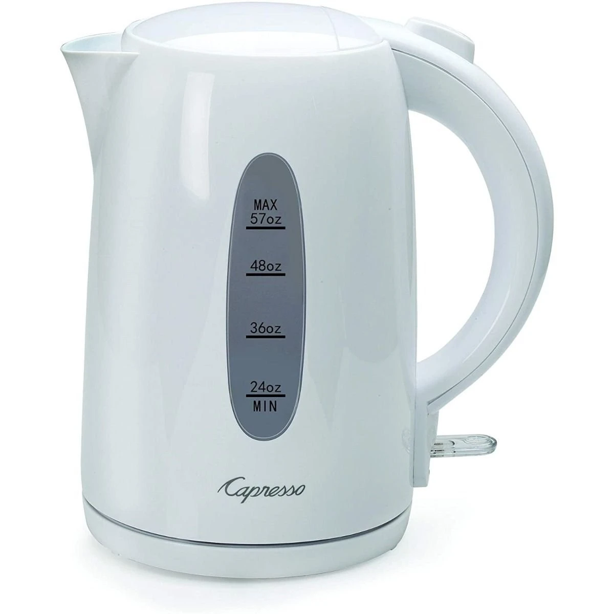 Relax and unwind after a long day with a soothing cup of chamomile tea made with your Capresso Electric Water Kettle. This kettle features a pleasant matte white exterior with a large water level window labeled in ounces for precise measuring. The large handle is comfortable to hold while pressing the button for drip-free pours, and the micro filter in the spout ensures that no contaminants affect the quality and taste of your tea. If you’re craving something other than tea, you can also use this kettle to boil water for coffee, soup, instant mashed potatoes and more. The auto shut-off feature ensures maximum safety during use. Whether you prefer tea leaves or tea bags, spicy chai with cream or floral blackberry hibiscus and honey, the Capresso Electric Water Kettle is guaranteed to be your cup of tea!
