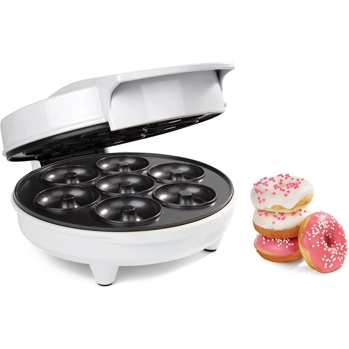 - Electric donut maker bakes 7 donuts at a time in minutes