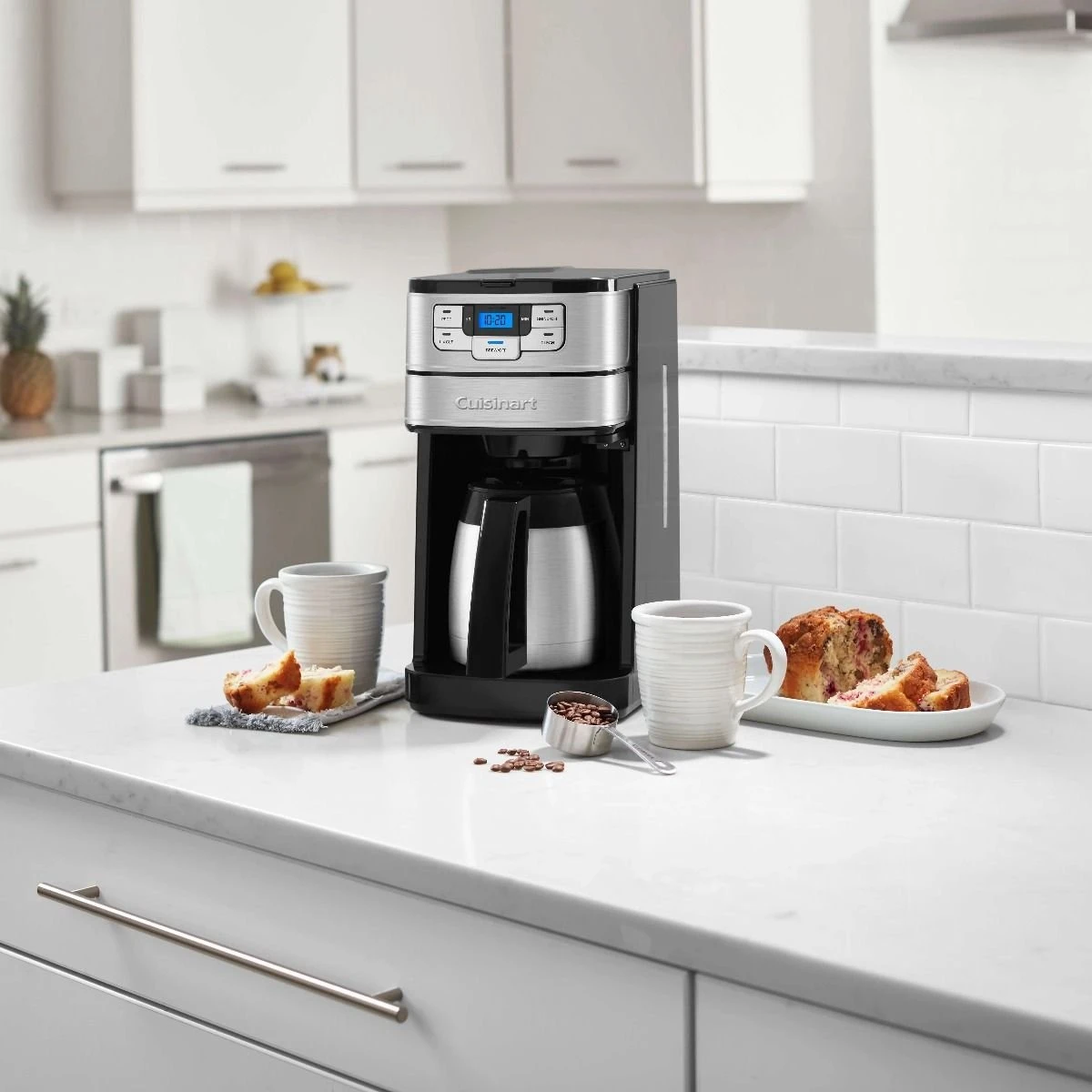 Cuisinart 10-Cup Automatic Grind & Brew Coffeemaker with Thermal Carafe – Black & Stainless Steel Features: