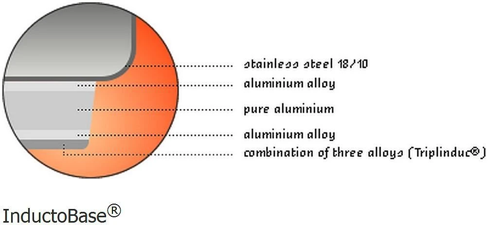 - TriplInduc® keeps saucepans flat over a lifetime of use while increasing induction efficiency 33%