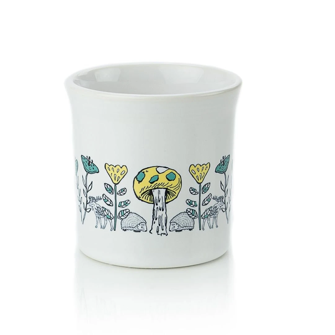 Enjoy the warmth of homemade cocoa, the energy of fresh coffee, and more out of the Nordic Woodland 12-Ounce Java Mug by Fiesta®. As a part of the exclusive Everything Kitchens design collection, the vibrant flower & mushroom artwork covering its durable, polished surface adds something extra special to the comfort of your own home. Easily pair it with other pieces in the Nordic Woodland collection or simply add it to any of your existing Fiesta® pieces at home. Whether you choose to use the white mug in the microwave, dishwasher, or even the oven, it remains absolutely safe, up to 350°F in temperature in fact. The 12-ounce mug is enough to quench your thirst throughout the day or your need to wake up in the morning. So, enjoy the pure joy and sophistication of homemade or store-bought beverages served smoothly out of the Fiesta® Nordic Woodland 12-Ounce Java Mug.