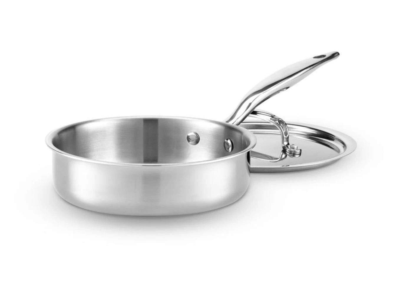 Whip up a delicious sauce, Sauté some fresh vegetables, and make a single-serving meal all with ease using the 1.5-Quart Sauté with Lid. This versatile piece of the Heritage steel Cookware Collection features 5-Ply construction with a titanium finish. This finish makes the cooking surface of your Sauté pan 20-times stronger than traditional stainless steel. To make this Sauté pan more versatile, it is dishwasher safe and oven-safe up to 800°F. The included lid fits snugly over the pan to lock in moisture as you cook. Add the Hammer Stahl Heritage Steel Cookware 1.5-Quart Sauté Pan with lid to your kitchen today and enjoy a delicious meal