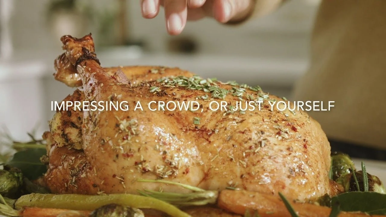 The oven’s large capacity provides enough space to hold a 9×13 baking pan for sheet cakes or one-pan dinners, or even two whole chickens (3.6lbs each)! Never overcook your meat again with the built-in temperature probe to monitor cooking temperature and alert you when your desired cooking temp is reached.