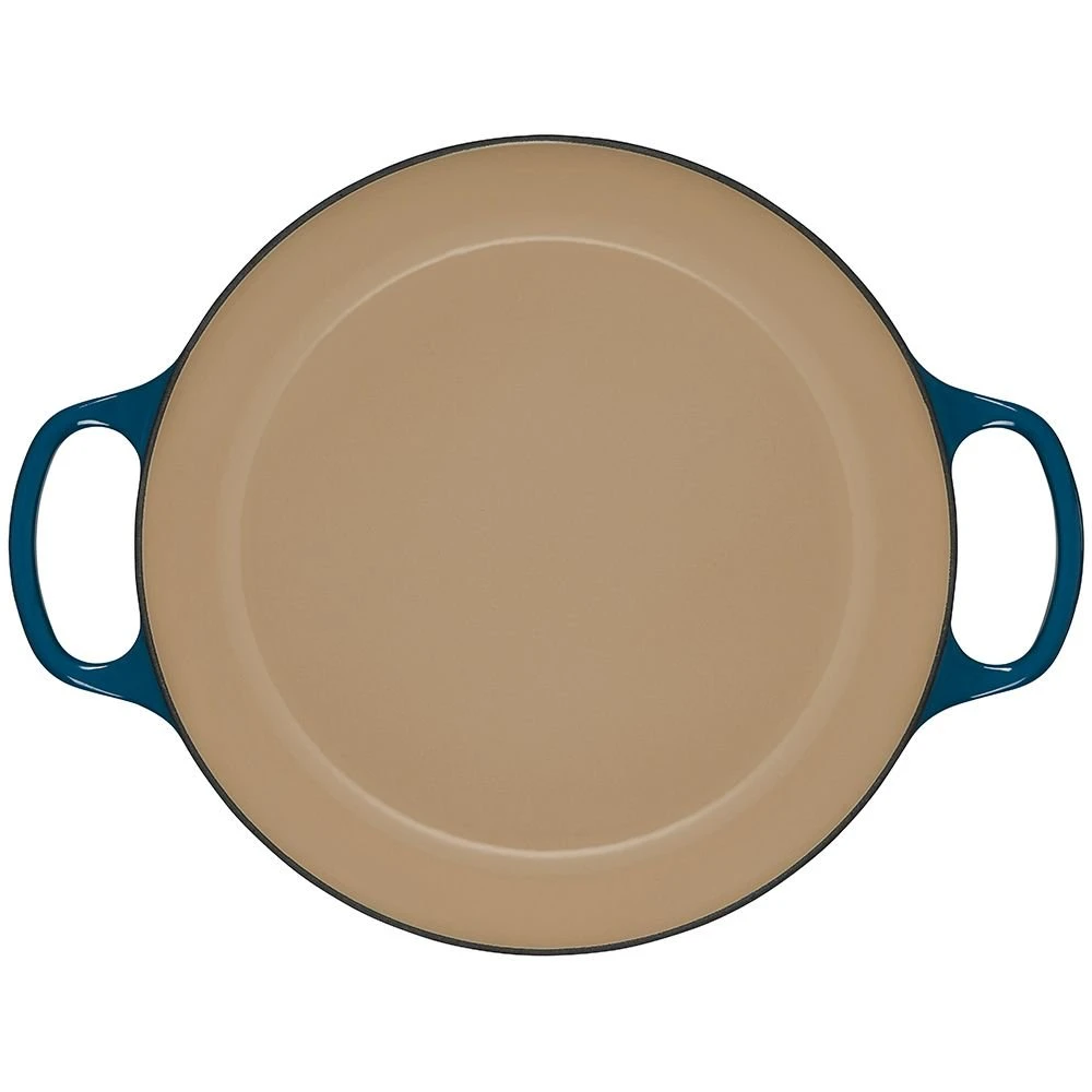 - Sand-colored interior enamel has a smooth finish that promotes caramelization, prevents sticking, and resists stains
