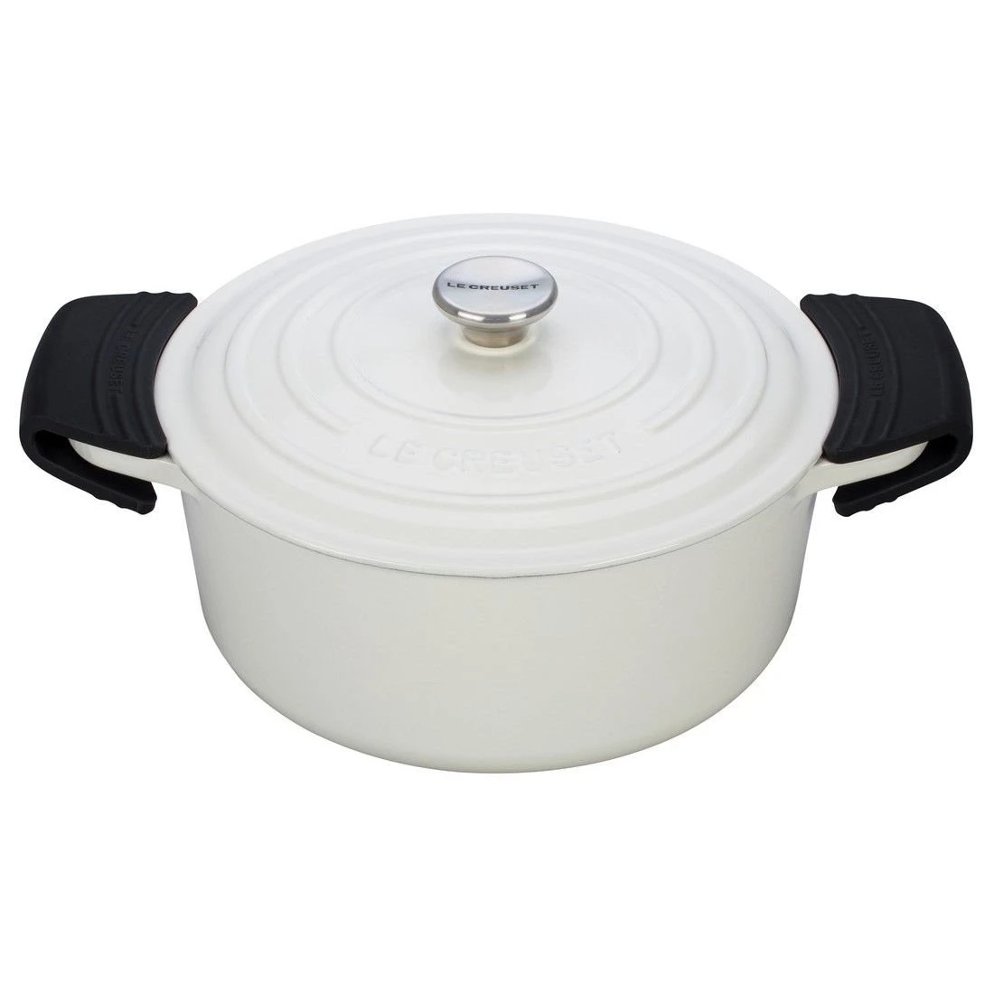 Protect your hands when moving cookware on the stove or carrying a finished meal to the table with these Silicone Handle Grips in Black by Le Creuset. Designed to shield hands from heat while providing a secure grip, these pot handle grips will fit a variety of Le Creuset cookware and bakeware handles, and accommodate many other brands as well. Each 5” x 2.5” silicone handle grip is textured and flexible for optimal gripping of even heavy, fully-loaded Dutch ovens. Like pot holders for your fingers, they’re flexible to accommodate many size handles. Use these handle grips to pull a Heritage or Signature baking dish from the oven, to bring a stock pot of boiling pasta to the sink to drain, to move a Dutch oven to and from the oven, or leave them hanging on the handles of hot pots and dishes on the stove or at the table to protect against accidental burns.