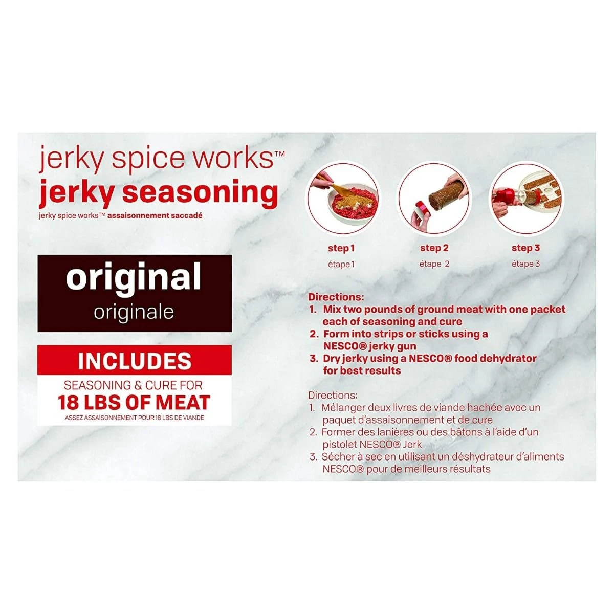 - 9 packets of the original flavor Nesco Jerky Seasoning seasons 18 lbs of jerky total