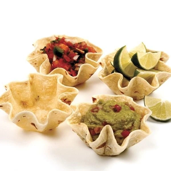 - Creates perfectly crisped tortilla bowls
