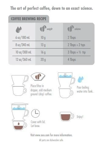 - Uses #2 cone coffee filters – includes 10 OXO Unbleached All-Natural #2 Cone Coffee Filters to start