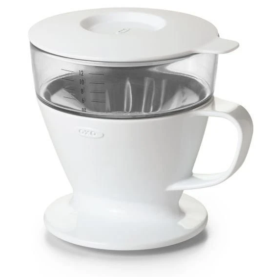 Get the full aromatic taste of pour-over coffee with less pouring with the Pour-Over Coffee Maker with Water Tank by OXO Brew! Designed to be a fuss-free way to brew pour-over coffee at home, this innovative brewer couldn’t be easier to use. Simply add ground coffee and pour hot water into the tank. No blooming time or precise pour needed! The water tank’s precise hole pattern will automatically distribute the hot water evenly and gently over the grounds at the correct speed to maximize flavor. It includes easy-to-read measurement markings and can hold up to 12 ounces of water. Skip the coffee house and be your own barista with OXO’s Pour-Over Coffee Maker!