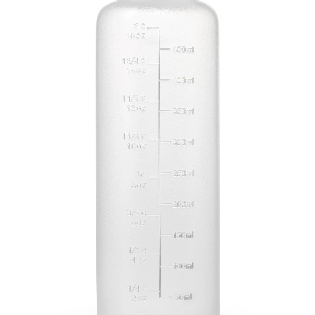 • Measurement markings in cups, ounces, and milliliters