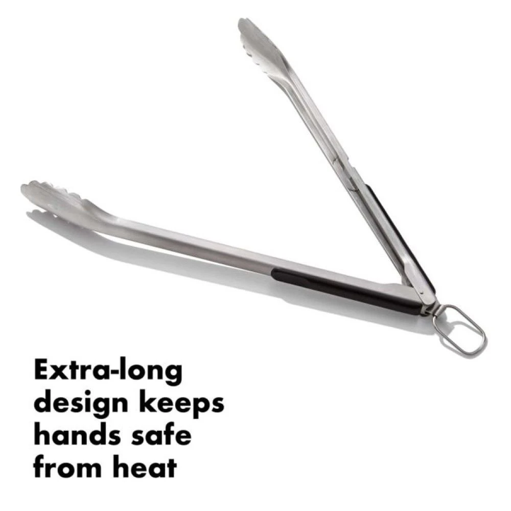 Become the grill master you were always supposed to be with the OXO Grilling Tongs! Its angled heads clinch and grip onto all cuts of meat and other sweating veggies on the grill top for flipping, turning, and transferring to a dish. What’s just as impressive as its grip is the built-in bottle opener to pop open a cold one while you are hard at work firing up steaks, burgers, and hot dogs. With a simple pull of the ring, the tongs close and can hang off the grill. No barbecue should go without convenience, so hold tight to your OXO Grilling Tongs and face the flames!