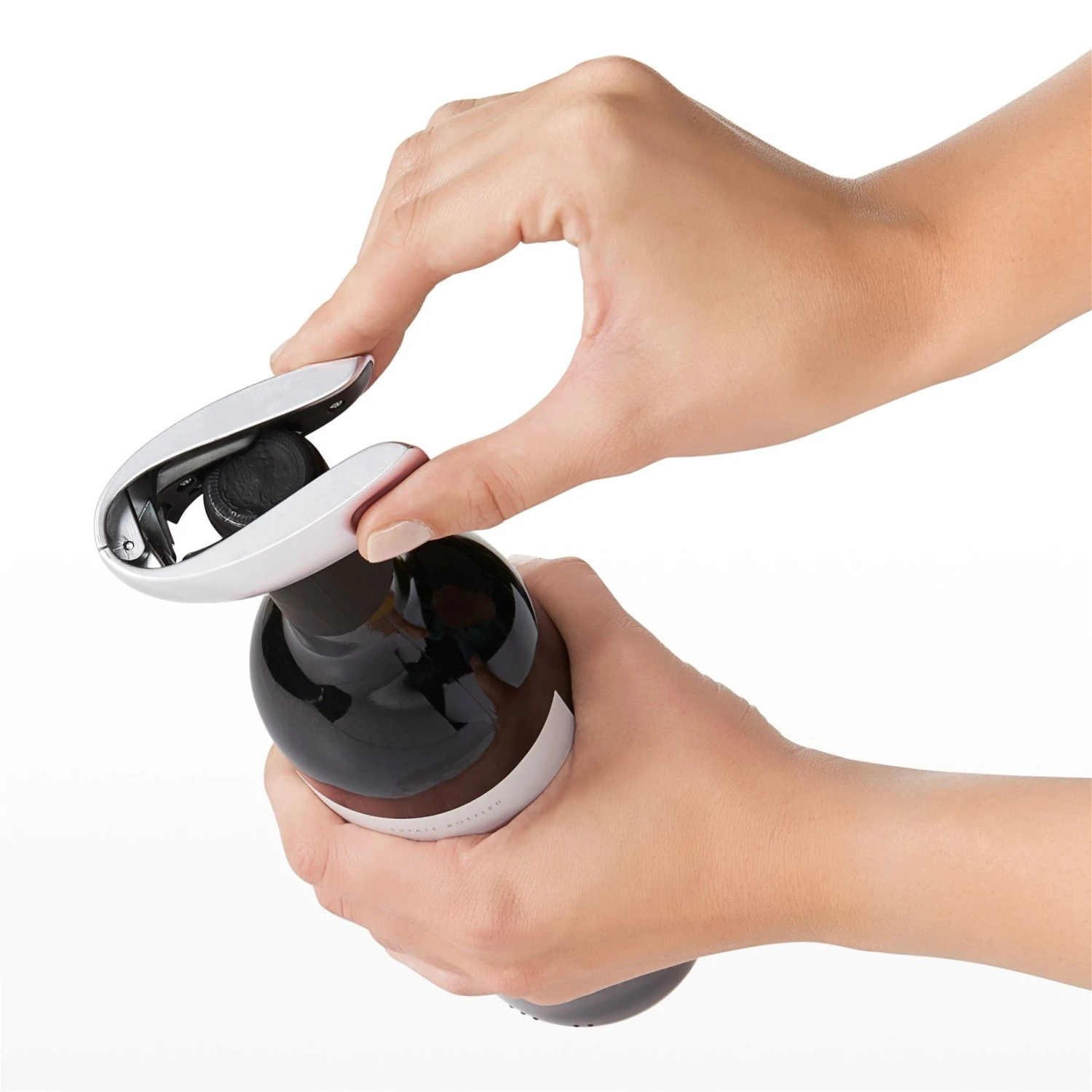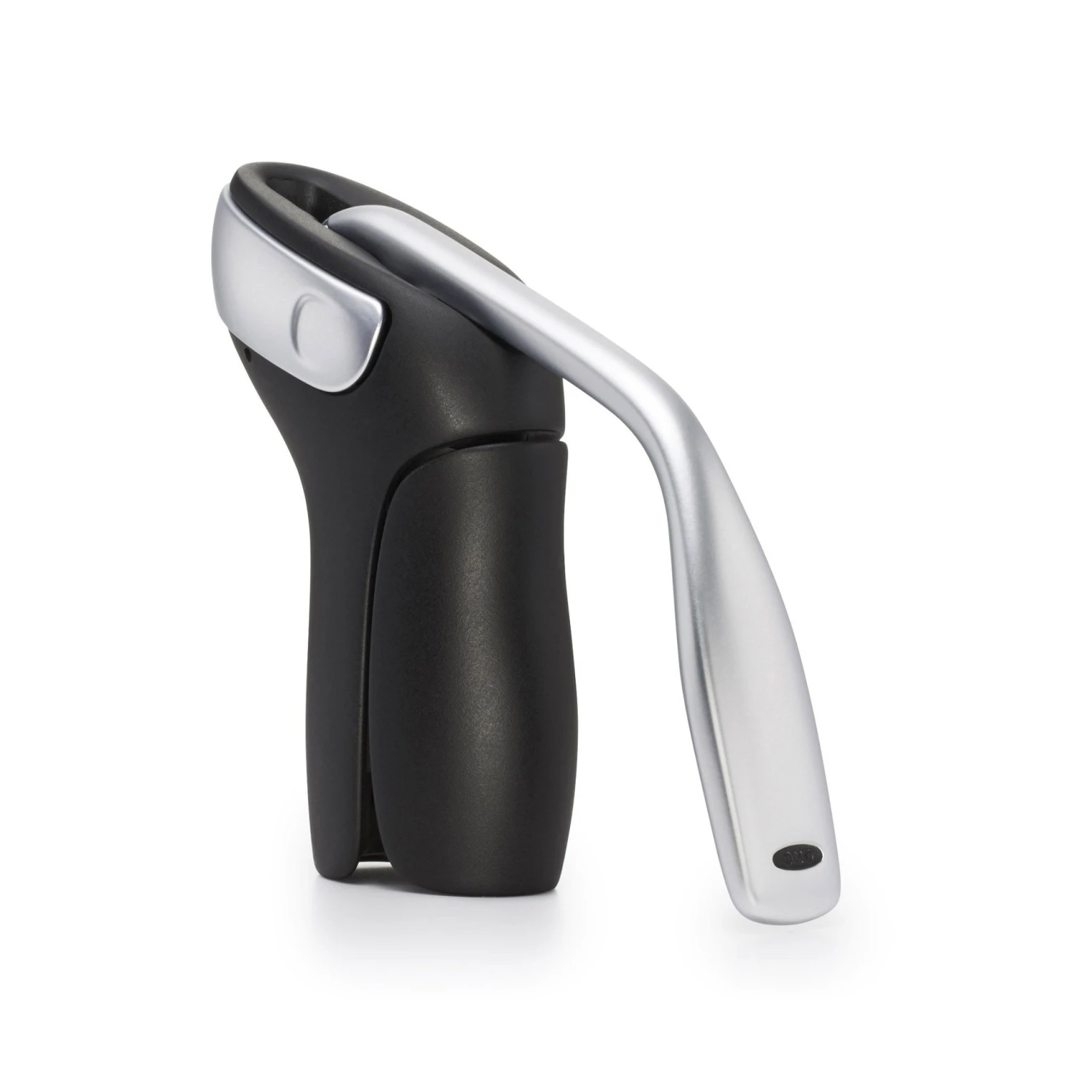 Never struggle with opening a bottle of wine again with the OXO Vertical Lever Corkscrew! This innovative corkscrew removes the cork from your bottle with 2 easy motions. To use, just lift the lever and place the corkscrew onto the bottle. Grip the corkscrew with one hand and lower the lever with the other, then lift the lever one more time to pull out the cork, and voila – an aromatic bottle of wine ready to pour and enjoy! This nifty device is made of thick and durable plastic and has a die-cast zinc handle with a non-slip grip for comfort. Plus, it has a built-in removable foil cutter and comes with an extra replacement screw, ensuring you’ll have everything you need to seamlessly open up your favorite bottle of wine anytime! Packaged in a sleek and stylish gift box, the OXO Vertical Lever Corkscrew is the perfect tool for you or the wine lover in your life!