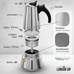 Escali London Sip 3 Cup Stainless Steel Espresso Maker | Silver
