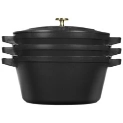 Staub Stackable Cocotte, Braiser, And Grill Pan With Lid | Black