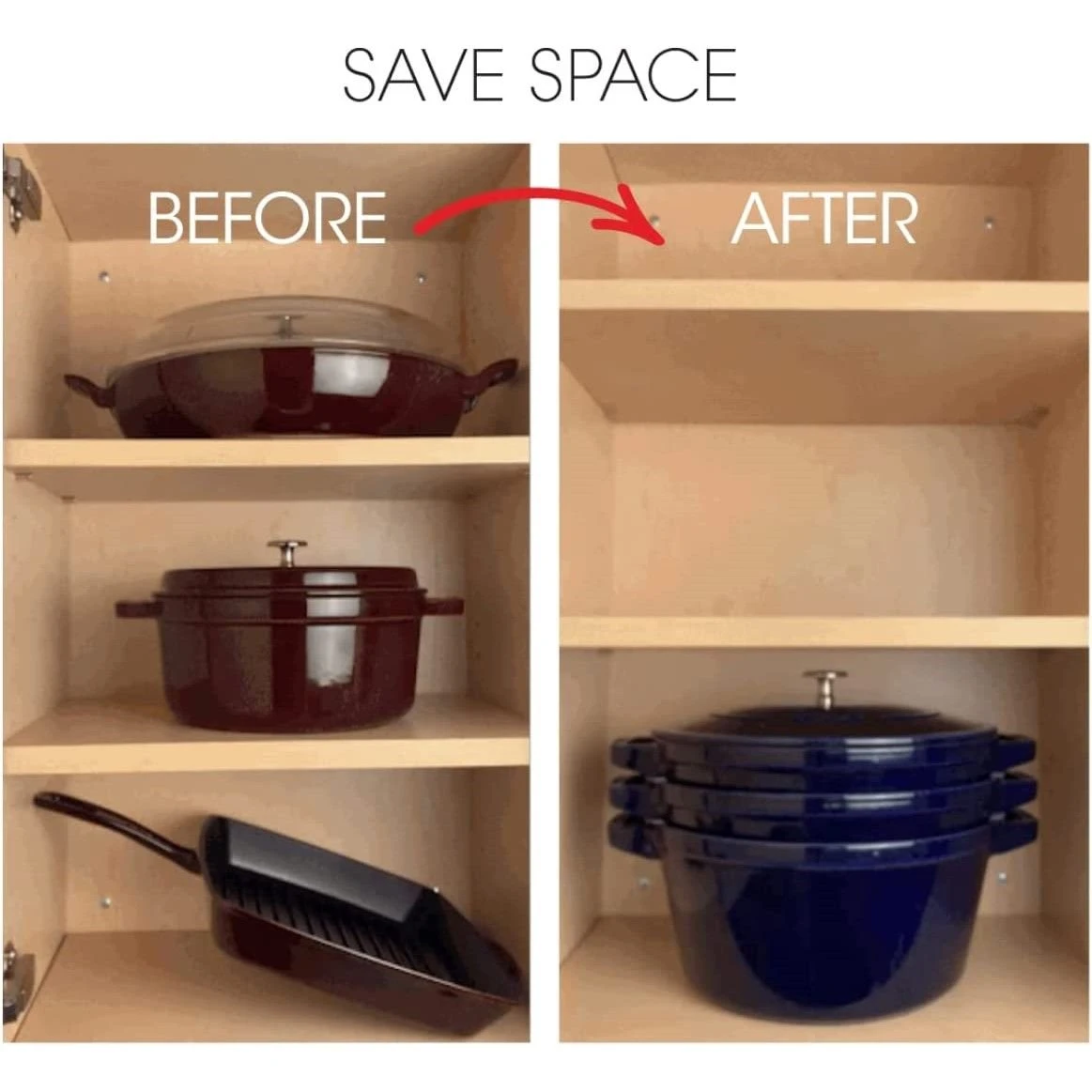 - Attachable Rubberized Bumpers (to prevent damage when stacking; remove when cooking)