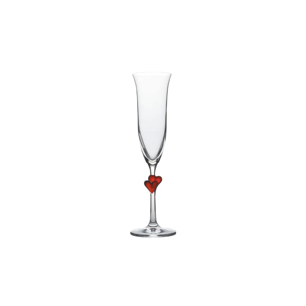 - Enjoy champagne or sparkling wine in the classic flute shape with distinctive, romantic red heart detailing on the stem