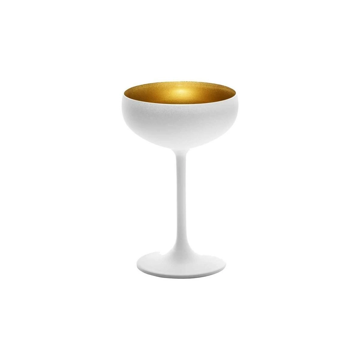 Stolzle 7.75oz Olympia Crystal Champagne Saucer Coupe Glasses – Set of 2 (White & Gold) Features: