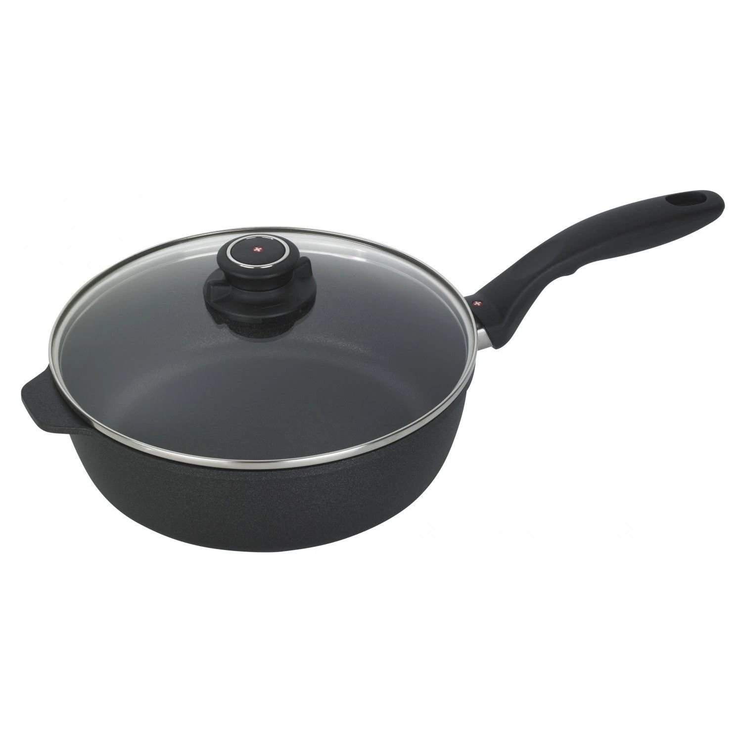 This easy-to-clean non-stick frying pan is rivet-free and protects against bacteria. The flat base will not tip, spin, or warp while you are perfecting your dish. The comfortable, ergonomic, stay-cool handles can withstand heat up to 500°F so you can transition effortlessly between stovetop to oven. With a sleek, high-end finish, your Swiss Diamond cookware will look just as great on the tabletop so you can serve a warm soup or sauce. With this wonderful Swiss Diamond XD 3.2 Qt Non-Stick Saucepan with Lid in your kitchen, you will be ready to spice up your favorite recipes!
