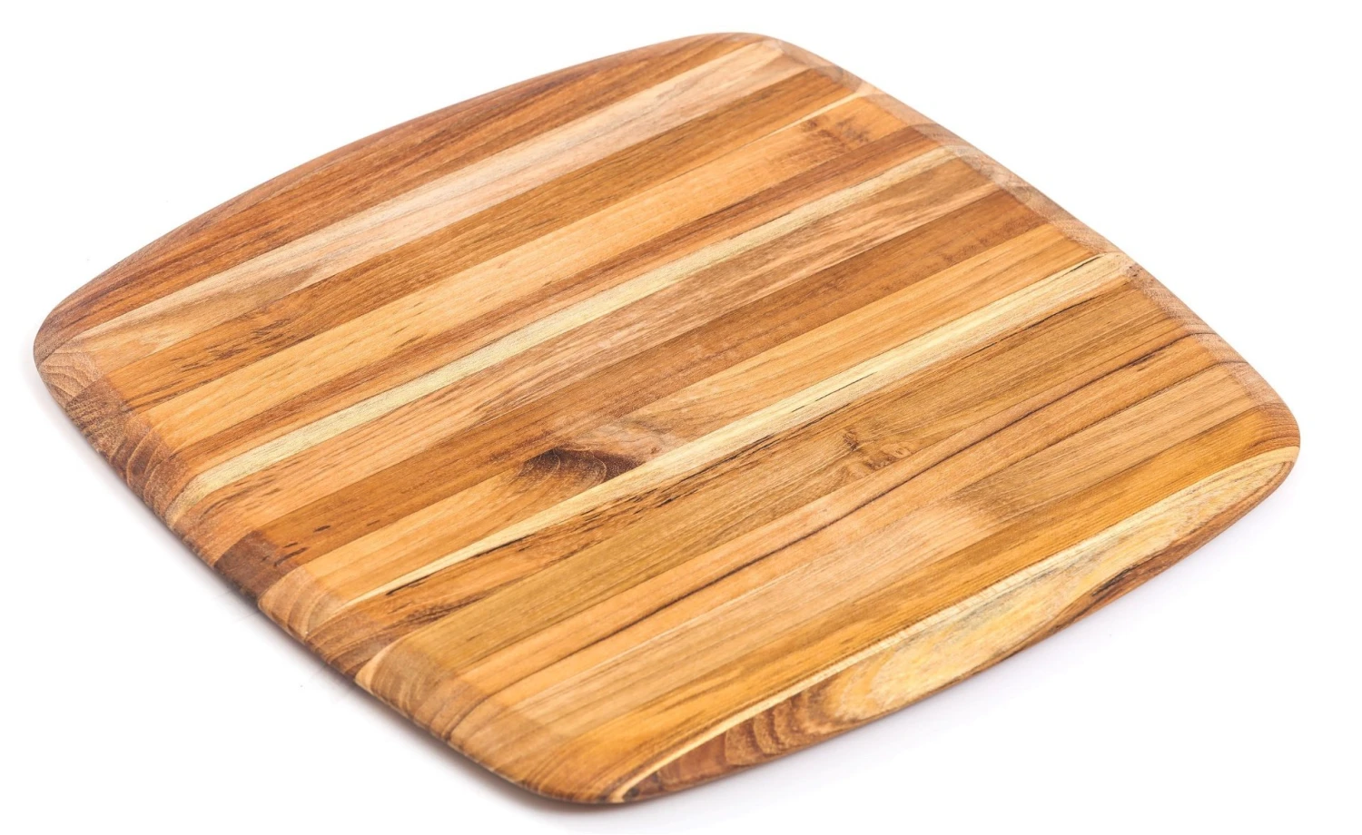 Prepare fresh vegetables, slice a warm loaf of bread, or serve a decadent charcuterie spread with the TeakHaus Square Small Cutting Board from the Elegant Collection. This stunning collection features pieces designed with the durability of the Traditional boards, yet with a lighter weight, slimmer construction, allowing for a seamless transition from the kitchen to the table for a beautiful display. Crafted from FSC®-certified, stain-resistant teak wood that’ll never dull knives, this cutting board has rounded edges and a smooth, edge grain finish that’ll add a sophisticated touch to any table setting. For everyday use and special occasions alike, try the TeakHaus Elegant Square Edge Grain Cutting Board today!