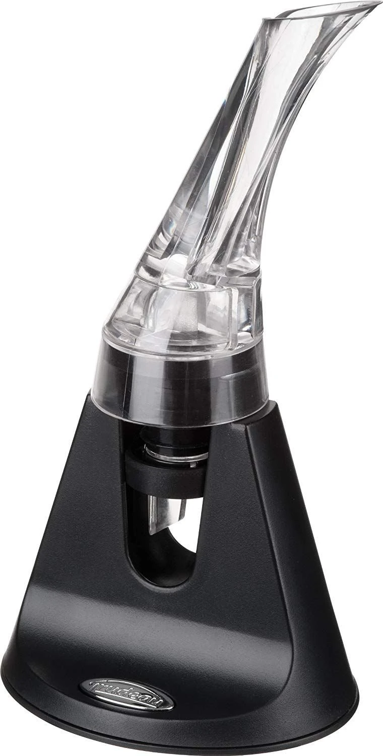 Uncork your favorite bottle of wine, place this Trudeau Aroma Wine Aerator onto the top of the bottle, then pour yourself a delicious glass of wine to breathe in its wonderful bouquet. This innovative wine aerator features an air intake system that aerates wine as you pour by injecting air directly into the wine. While it can take up to 30 minutes for a traditional decanter to get the amount of air needed, this wine aerator does so instantly. Smell the bloom of an opening bouquet as it unfolds inside your glass when you pour with your new Trudeau Aroma Wine Aerator.