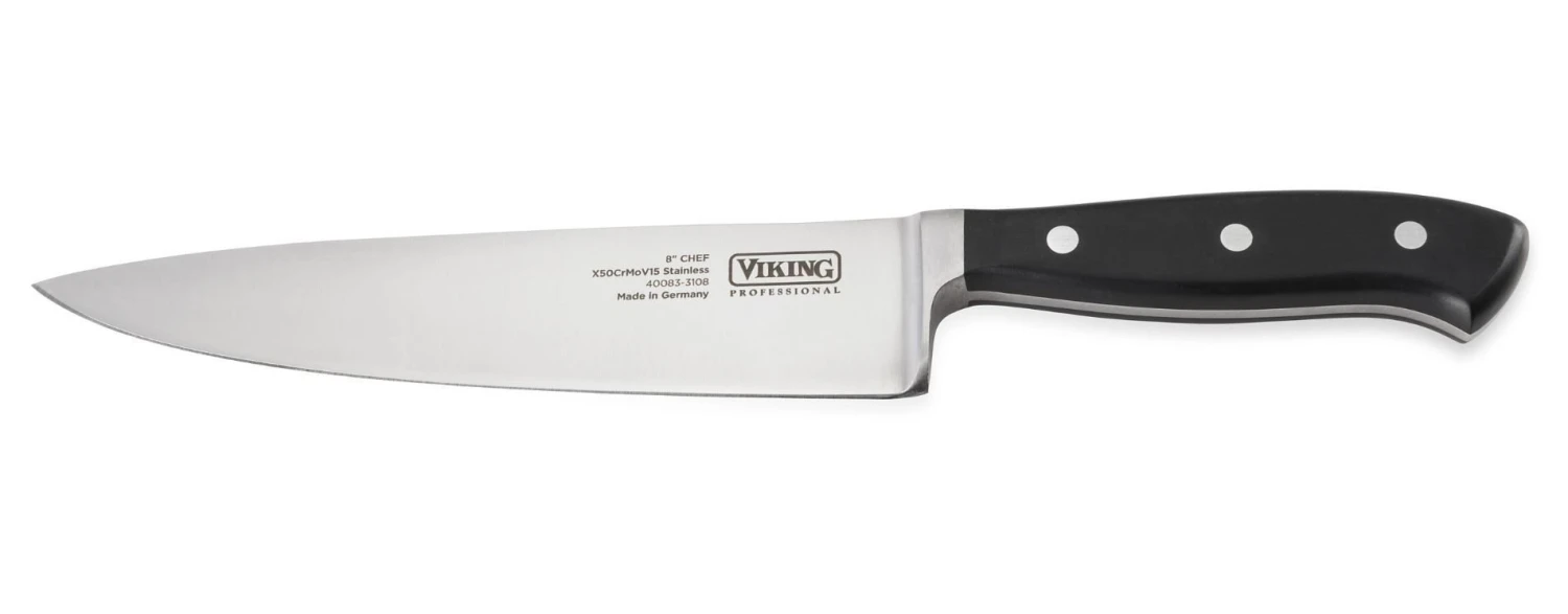 Handle nearly any cutting task easily with the Viking Professional 7-Piece Cutlery Set! Handcrafted in Solingen, Germany from the finest German stainless steel, the knives in this set are fully-forged with a full tang and seamless bolster. Each blade has a 15° cutting edge that has been heat hardened under inert gas for strength and longevity. This process creates the perfect balance of longer edge-retention with ease of sharpening. Built for a professional chef’s needs in a busy kitchen, these super-sharp knives are extraordinarily well balanced with little to no weight on the upward lift so when you’re using one, it feels like an extension of your hand and won’t cause fatigue. With the four most-used knives you need to get started, plus 2 extra slots so you can add on to your collection later, this block will keep all of your knives stored safely, in an attractive, minimalistic block. Add the Viking Professional Cutlery Set to your kitchen and see how enjoyable prep can be!